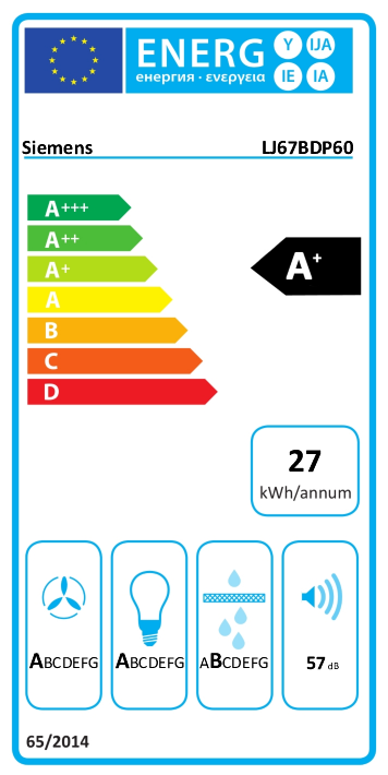 - Gemäß EN 61591 und EN/IEC 60704-2-13 kann das Gerät im Abluftbetrieb folgende Werte erreichen: