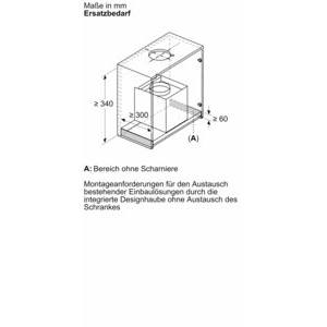 - Für den Einbau in höhere Oberschränke sind Kaminverlängerungen als optionales Zubehör erhältlich.